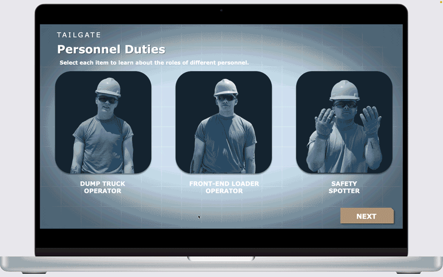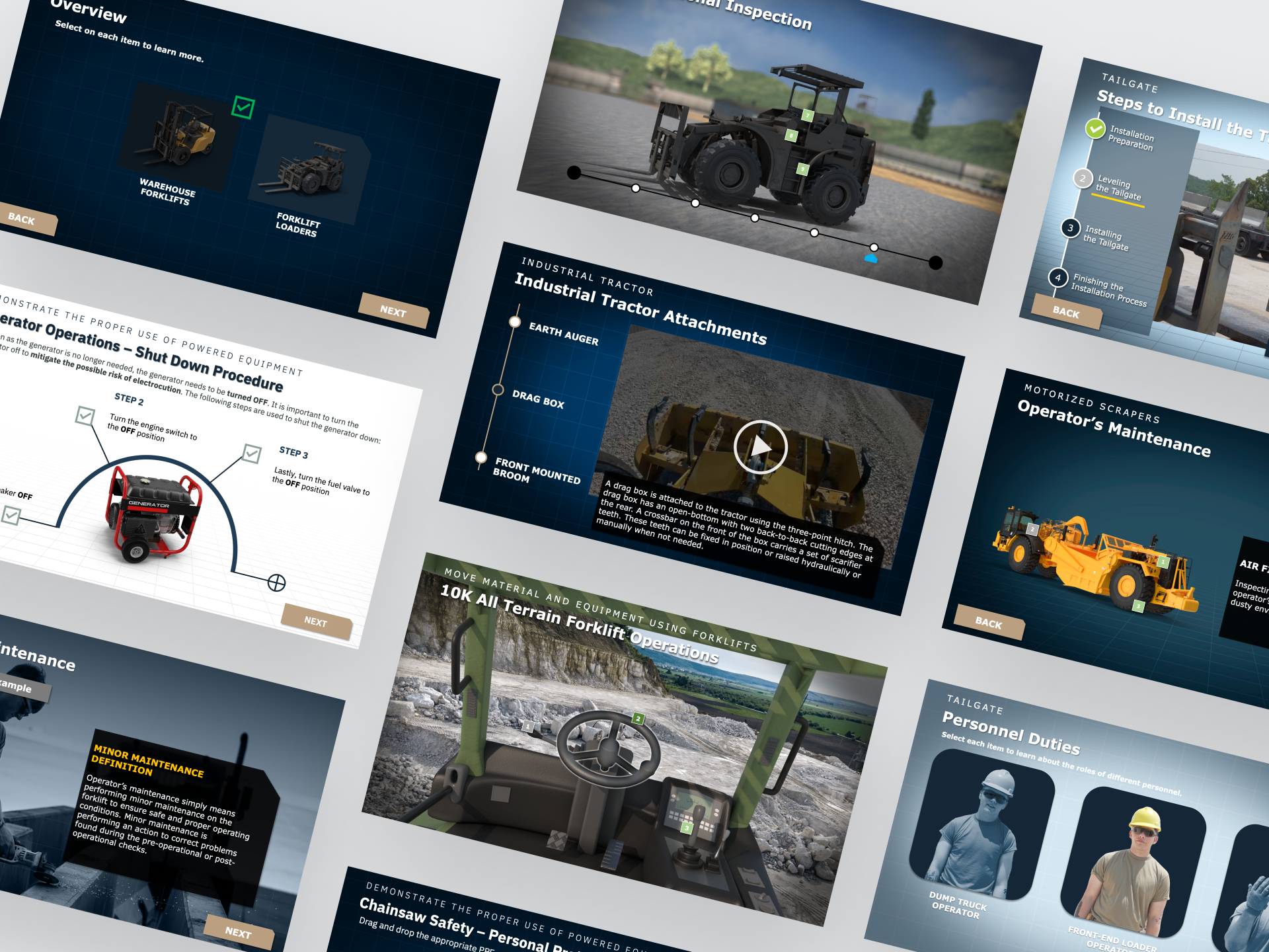 This is the developed version of a 360 slider interaction I prototyped as part of a lesson about operating small engines. This interaction allows learners to view all sides of a small engine and understand specific components through a video. In addition to designing this interaction, I also produced the videos for this lesson.